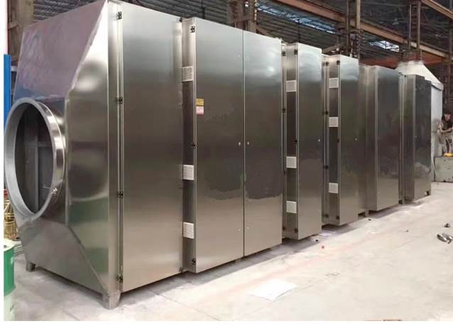 本產品采用低溫等離子體(離子管)、高能紫外線光束(UV光解燈管)、氧化反應催化劑等工藝來降解和凈化廢氣,改變廢氣成分如:氨、三甲胺、硫化氫、甲硫氫、甲硫醇、甲硫醚、二甲二硫、二硫化碳和苯乙烯,VOC類、苯、甲苯、二甲苯的分子鏈結構,使有機或無機高分子化合物分子鏈,通過強氧化性的低溫等離子體產生的高能離子、高能紫外線光束照射、催化劑的氧化反應,降解轉變成低分子化合物,如CO2、H2O等。